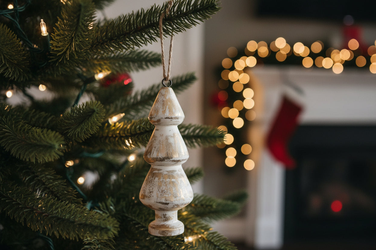 Designed in three timeless variations—distressed white with gold accents, natural wood, and a blended whitewashed finish—this curated collection adds warmth, texture, and minimalist elegance to any holiday décor style.